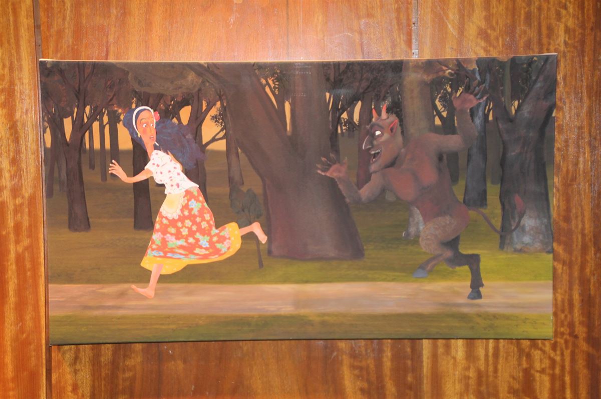 Im Hintergrund an der Wand Bilder. Illustrationen von Volksmärchen. Aber diese haben eine andere Stimmung, als jene aus den mehreren Hundert Zeichentrickfilmen, die im Laufe der Jahrzehnte im Kecskeméter Studio gefertigt wurden.