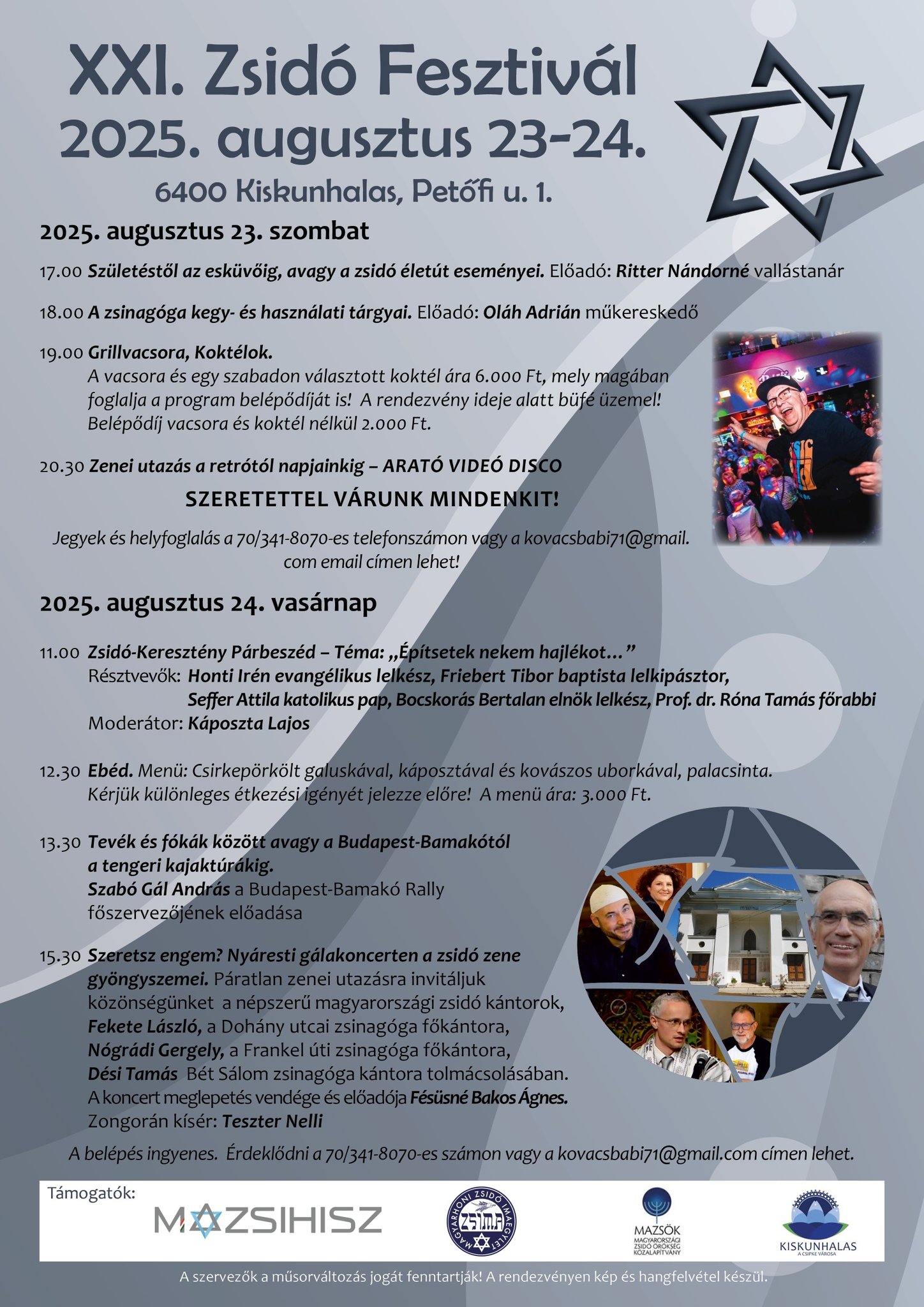17.00: Von der Geburt bis Zum Tod – Lebensweg bei den Juden. Vortrag der Vorsitzenden der Glaubensgemeinschaft zu Kiskunhalas. (Deutschsprachige Zusammenfassung)