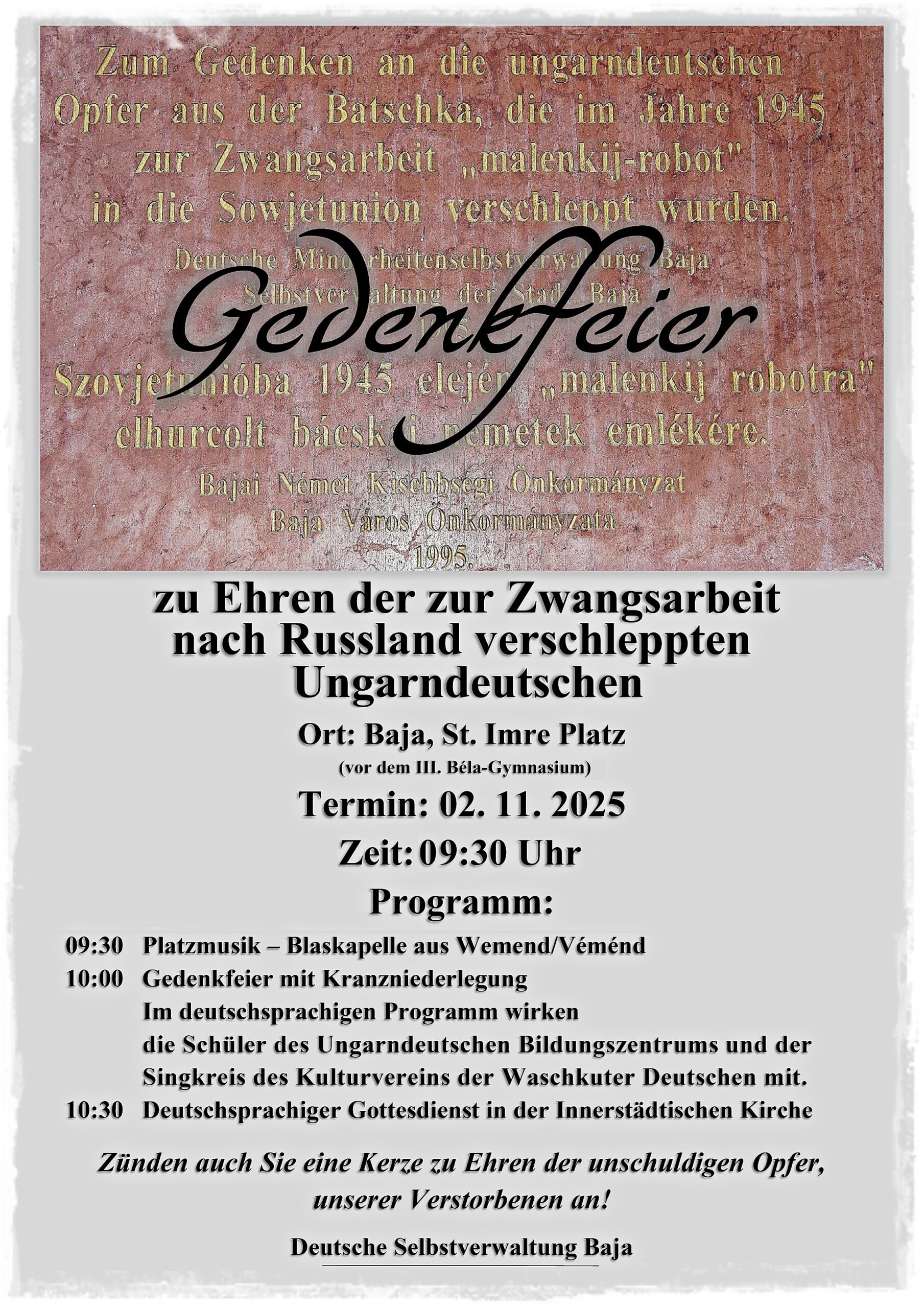 az oroszországi kényszermunkára elhurcolt magyarországi németek tiszteletére