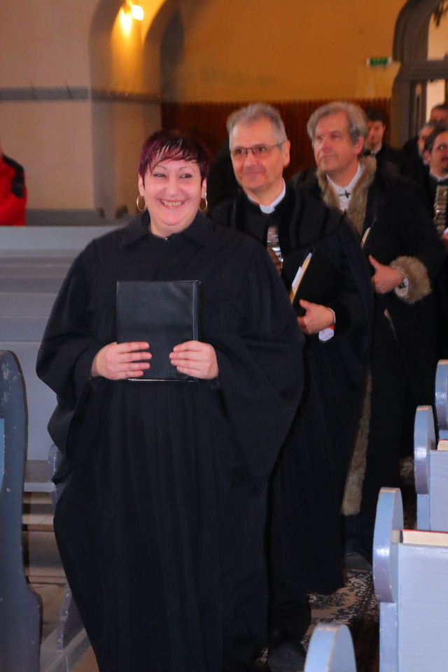 kommt aus dem Sozialbereich. Sie hat das evangelische Theologiestudium in Hermannstadt im Oktober letzten Jahres absolviert. An der Einführungszeremonie nahmen zahlreiche Pfarrer aus den umliegenden Kirchengemeinden teil.