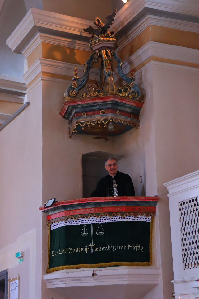 diente der Dechant aus der Hauptstadt Bukarest, Daniel Zikeli. Er hat auf der Grundlage des Hebräerbriefes des Apostel Paulus herausgearbeitet, dass jedes Kind anders lernt und andere Wünsche hat! Das eine wolle Milch, das andere schon eine feste Speise. Und das sei bei den erwachsenen Menschen ebenso. Ein Pfarrer dürfte den Mut nicht verlieren, jedem Gemeindeglied zu geben, was er / sie braucht. So müsse die neue Pfarrerin nicht perfekt sein, viel mehr treu und ehrlich.